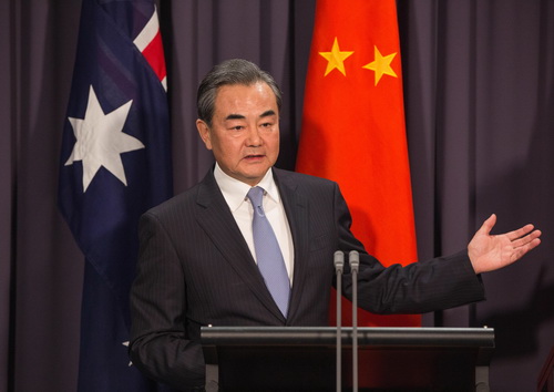 当地时间2017年2月7日,外交部长王毅在堪培拉与澳大利亚外长毕晓普举行第四轮中澳外交与战略对话后共同会见记者。