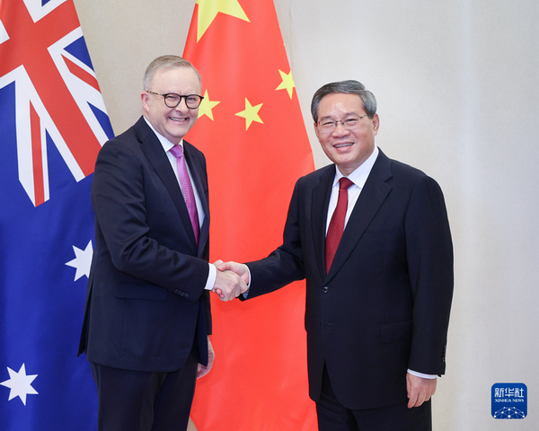 李强表示,当前,中澳关系总体继续向好发展,两国各领域对话合作稳步推进,地方和人文交流更加活跃。中方愿同澳方进一步加强相互理解,持续携手前行,打造更加成熟稳定、更加富有成果的中澳全面战略伙伴关系,更好造福两国人民,为地区和世界和平稳定发展作出更大贡献。