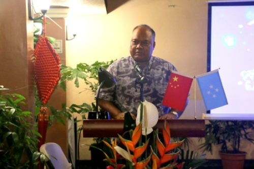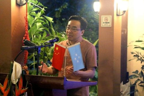 2022年2月25日,“崖边彩虹”餐厅内窗花、灯笼、中国结与缤纷鲜花交相辉映,驻密克罗尼西亚联邦使馆在此举办自“封岛”以来与密外交部的首次传统联谊活动。驻密克罗尼西亚联邦大使黄峥夫妇携使馆外交官、密外交部长埃利伊萨夫妇携密外交部同事等出席。