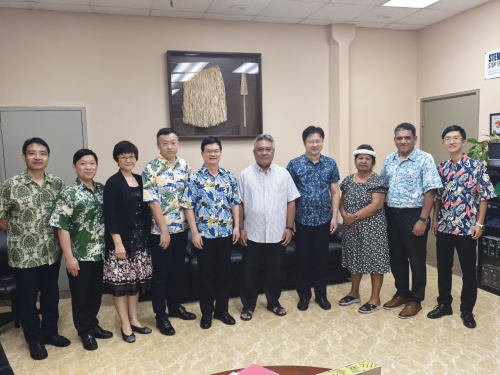 2025年9月18日,驻密克罗尼西亚联邦大使吴伟陪同广东省中山市代表团会见密联邦卫生与社会事务部部长萨默、波纳佩州索克斯市市长厄尼斯特等官员。