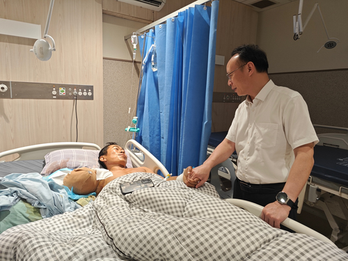 吕进大使向伤者转达了祖国和使馆的关心,详细询问其伤势情况与治疗需求。吕进大使表示,中国政府始终高度重视保障海外中国公民安全与合法权益。事故发生后,使馆立即启动应急预案,第一时间联系瑙方高层,积极协调政府、医院等多方力量,为我船只入港、伤员转运和接治开辟绿色通道,全力以赴确保伤员在最短时间内获得救治。吕进大使强调,无论同胞们身在何处,祖国和使馆永远是大家最坚强的后盾。