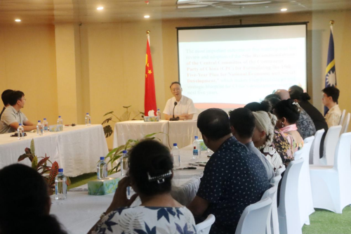 2025年11月4日,驻瑙鲁使馆举办中国共产党二十届四中全会精神宣介会,瑙鲁总统特别助理爱德华、5位政府部门常秘、媒体和工商界代表等50余人出席。驻瑙鲁大使吕进重点宣介“十五五”规划建议的主要内容及其对中瑙合作的重要意义。