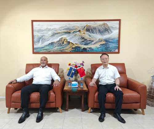 2025年11月13日,瑙鲁代总统、外长安格明应驻瑙鲁大使吕进邀请到官邸做客。