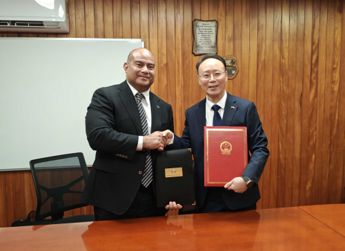 2025年11月26日,驻瑙鲁大使吕进与瑙鲁总统阿迪昂签署双边发展合作文件,双方并就中瑙关系发展和务实合作深入交换意见。