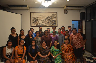 招待会上,留学归国的萨摩亚学生宣布正式成立萨摩亚中国奖学金留学生校友会。