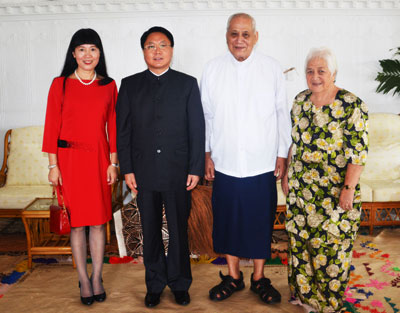 2015年9月15日,中国新任驻萨摩亚独立国大使王雪峰在萨摩亚国家元首官邸向萨摩亚国家元首埃菲递交国书。