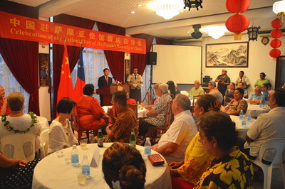 王大使首先在致辞中表示, 自9月12日到任以来,在和萨摩亚各界人士的广泛接触中深切感受到中萨两国深厚的传统友谊。作为新任中国大使,他将继续努力为增进两国人民之间的友谊、推动两国友好合作关系发展贡献力量。