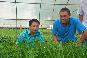 | 王雪峰大使与中国援萨农业专家交流 | 王雪峰大使了解中国品种蔬菜长势 |