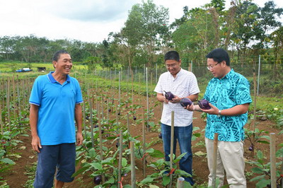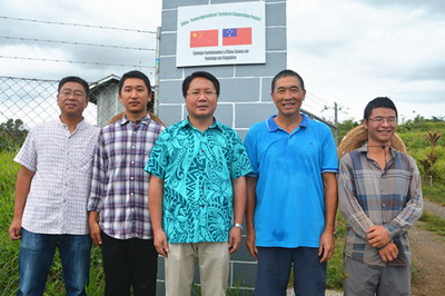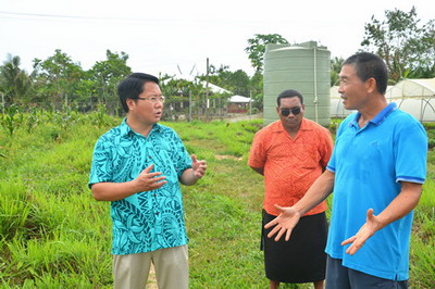 2015年10月9日,驻萨摩亚大使王雪峰率使馆经商处同志考察了中国援助的中萨农业技术合作示范农场。