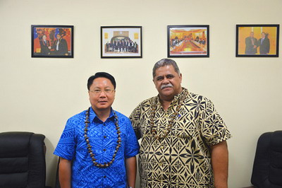 2015年10月16日,驻萨摩亚大使王雪峰拜会萨摩亚议长拉乌利。