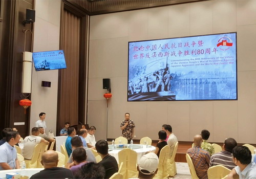2025年8月24日,驻萨摩亚大使费明星出席纪念中国人民抗日战争暨世界反法西斯战争胜利80周年图片展及观影活动,旅萨侨胞和中资机构代表参加。