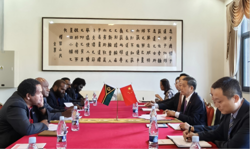 2025年11月11日,驻瓦努阿图使馆同瓦外交部举行年终工作磋商。驻瓦努阿图大使李名刚、瓦外交部代理总司长帕科阿、外交局长巴兹尔等参加。