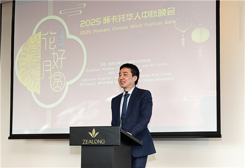 王代总领事向大家致以节日祝福,感谢当地政府支持华人社区发展,充分肯定怀卡托地区侨胞积极弘扬中华优秀传统文化,为中新民心相通作出贡献,希望大家继续发扬爱国爱乡、团结互助的优良传统,支持祖(籍)国发展建设与中新友好合作。索斯盖特市长在致辞中祝华人中秋快乐,对其推动多元文化和社区建设表示感谢,并介绍了汉市同成都市、无锡市友城合作成果。