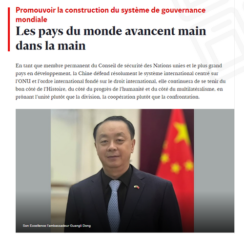 2025年9月17日,驻阿尔及利亚大使董广利在阿法文主流媒体《表达报》发表题为《推动全球治理体系建设 世界各国携手前行》的署名文章,深入宣介习近平主席提出的全球治理倡议。全文如下: