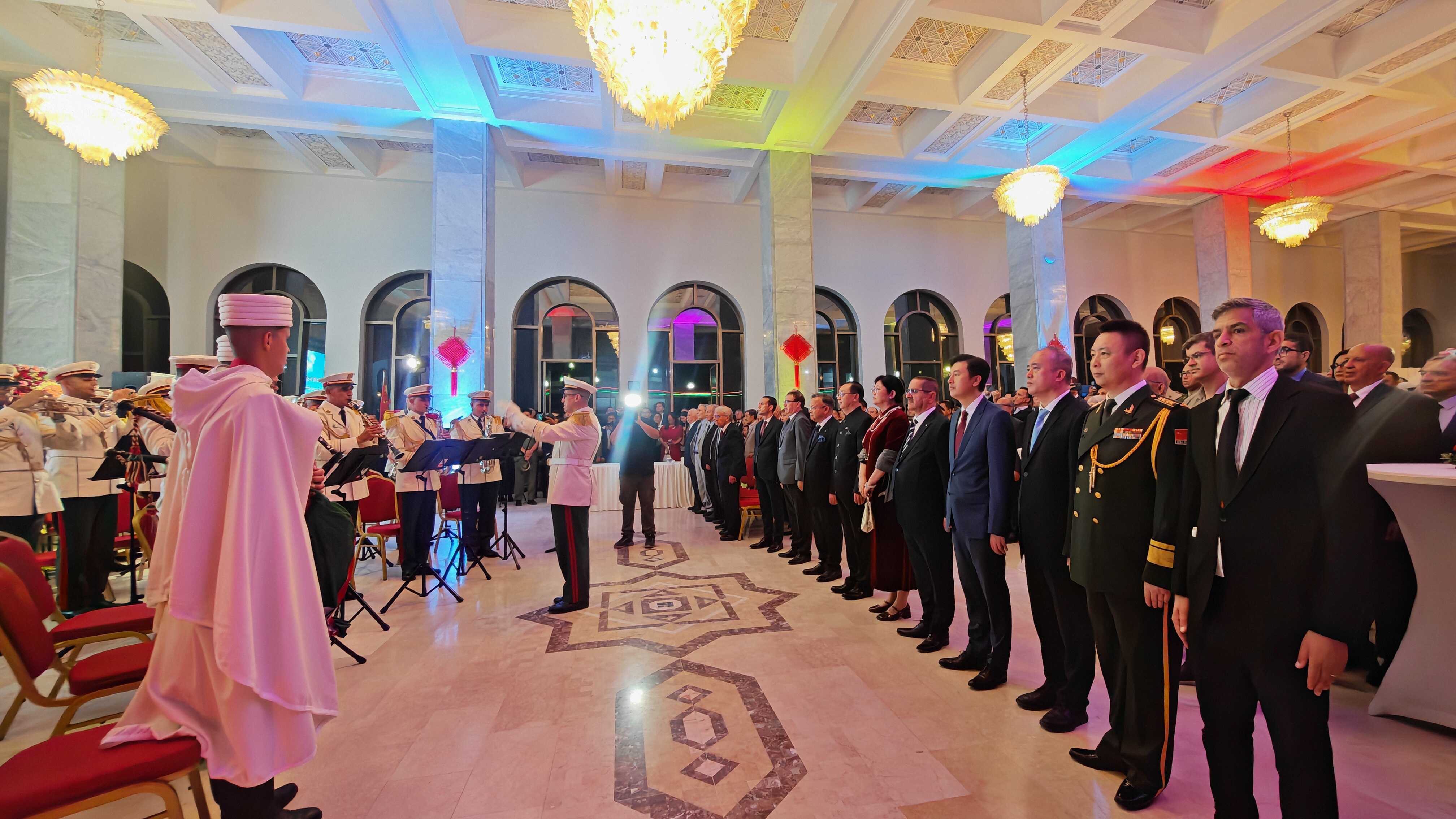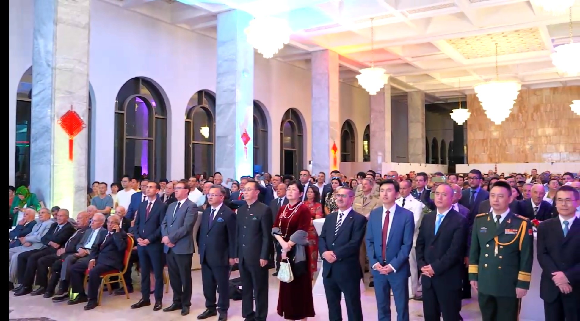 2025年9月23日,驻阿尔及利亚使馆举办国庆76周年招待会。阿总统赠送花篮,人民军参谋长致贺。驻阿尔及利亚大使董广利,政府代表高教科研部长及党政军媒学各界人士,各国使节,在阿中资机构、华侨华人等700余人出席。