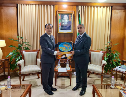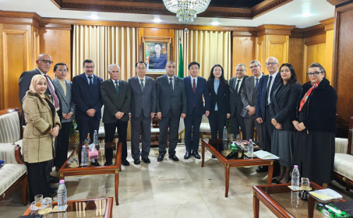 2025年12月22日,驻阿尔及利亚大使董广利拜会阿能源和可再生能源部长阿贾勒,就中阿能源合作等深入交流。