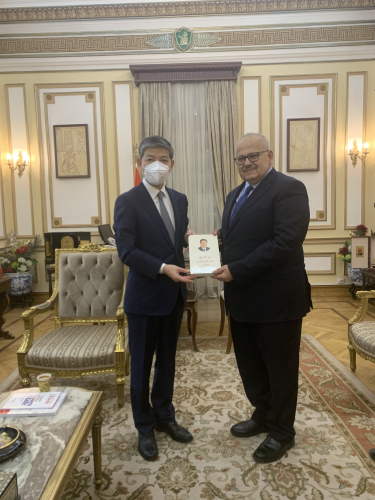 胡希特校长盛赞埃中两国关系,高度评价习近平主席治国理政思想和中国特色社会主义制度,对习近平主席的远见卓识深表敬佩。胡强调开罗大学高度重视同中国开展合作,愿与中方进一步加强“中文+”复合型人才培养,为促进两国各领域友好合作贡献力量。开罗大学积极支持埃及12所中小学中文教育试点工作,埃方专家组已同中方一道完成教材和教学大纲编写工作,并愿在教师选聘及培训等各方面予以全力配合。