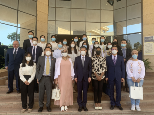 廖大使还专门前往开罗大学孔子学院与20名中文教师座谈,积极评价孔院中文教师在工作中发挥民间大使的作用,充分肯定大家在疫情下坚守岗位,鼓励大家进一步加强与埃及青年面对面、心对心交流,以生动活泼的形式讲好中国共产党故事、中国故事和中埃友好故事,推动中埃民心相通。