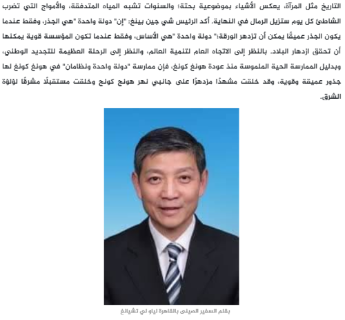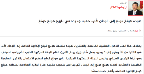 2022年7月7日,埃及《鲁兹优素福》杂志官方网站发表驻埃及大使廖力强署名文章《香港回归祖国,开启了香港历史新纪元》,全文如下: