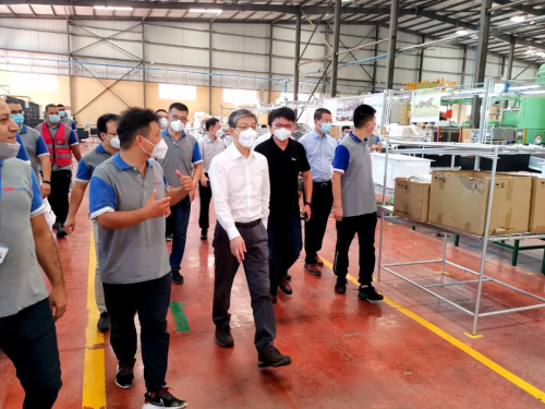 廖力强大使在美的电器埃及分公司冰箱工厂、埃及华为技术有限公司、中兴通讯股份有限公司埃及分公司,走访考察了企业生产线及办公区,慰问企业一线的中埃员工。