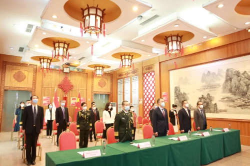 招待会上播放了中埃关系主题视频,全面回顾了中埃高层交往、团结抗疫、务实合作、人文交流等领域结出的累累硕果,展望了中埃携手共命运、一起向未来的光明前景。还播放了使馆特别制作的介绍台湾问题历史经纬的短视频,以史实展现两岸同属一个中国的事实和现状,表达14亿多中国人民坚决维护中国国家主权和领土完整的坚定意志。