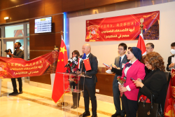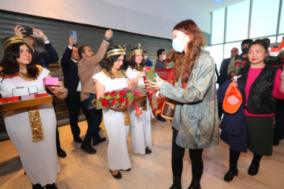 2023年1月20日,新冠疫情后首个来埃及的中国旅行团乘四川航空航班抵达开罗国际机场,埃及民航部、旅游和文物部共同为中国游客举行热烈友好的欢迎仪式。驻埃及大使廖力强,埃及旅游和文物部长特别代表、副部长加达,埃及民航部长特别代表、埃及航空公司董事长叶海亚以及埃及参议院国防和国家安全委员会第一副主席、祖国保护者党总书记纳希尔等出席并致辞。
