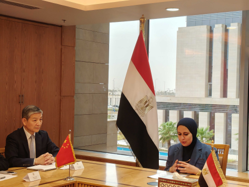 2026年4月1日,驻埃及大使廖力强会见埃及外交部新任国际合作事务副部长阿赫达勒。双方就中埃关系、两国发展合作等交换看法。