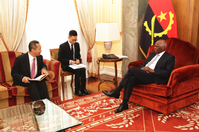 2016年12月13日,驻安哥拉大使崔爱民会见安总统多斯桑托斯,转交习近平主席致多斯桑托斯总统亲署信函,双方并就中安经贸、投融资合作相关议题深入交换了意见。安总统外交和国际合作事务秘书丰塞卡等陪同会见。