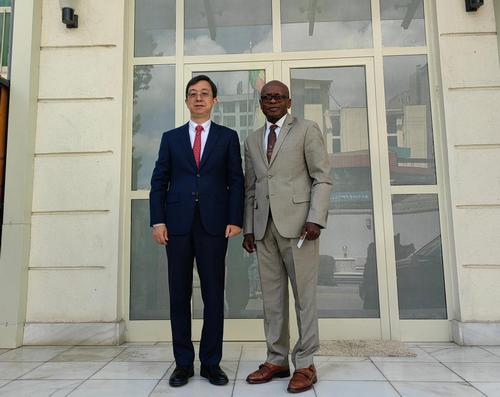 2025年11月18日,驻非盟使团团长蒋烽大使会见贝宁常驻非盟代表杰克佩大使。