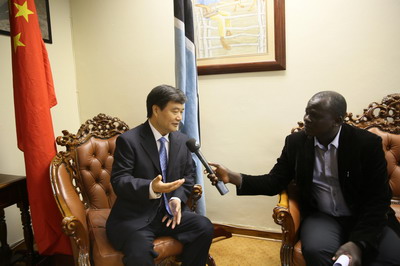 赵大使首先转达了习近平主席对卡马总统的亲切问候和良好祝愿,并对博茨瓦纳独立50周年表示由衷祝贺。赵大使说,中博传统友谊深厚。建交41年来,两国在经贸、文化、教育、卫生、野生动物保护等领域合作成果丰硕,中博友好日益深入人心。中方高度重视中博关系发展,愿以落实中非合作论坛约翰内斯堡峰会成果为契机,同博方一道进一步拓展双边各领域互利合作,促进两国友好合作关系发展,更好造福两国人民。任职期间,我将恪尽职守,全力以赴,不断促进中博各领域交流与合作,增进中博两国人民了解和友谊。