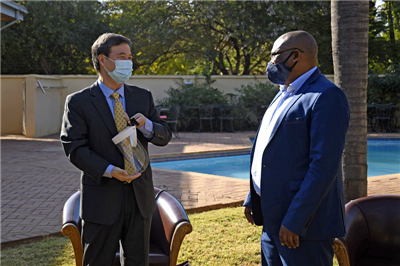 2020年6月25日,驻博茨瓦纳大使赵彦博应约会见博茨瓦纳大学校长诺里斯,双方就加强博大创新能力建设开展合作交换意见。