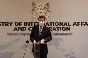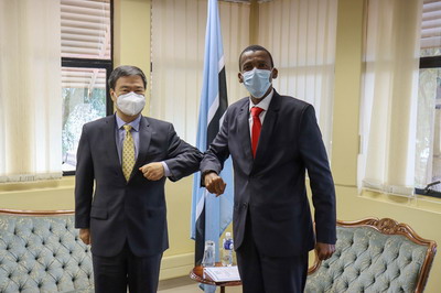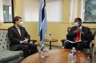 2021年2月17日,驻博茨瓦纳大使赵彦博离任拜会博外长夸佩。