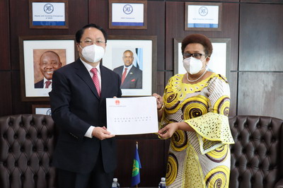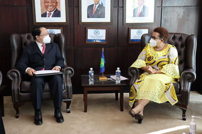 2021年4月16日,驻博茨瓦纳大使兼驻南部非洲发展共同体(南共体)代表王雪峰拜会南共体执行秘书塔克斯并递交任命书。