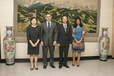 2011年12月28日,应驻佛得角大使李春华夫妇邀请,佛得角总统丰塞卡偕夫人到中国使馆做客。