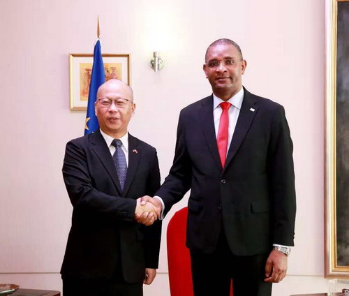 2025年9月16日,驻佛得角大使张洋拜会佛国民议会议长奥斯特林诺。