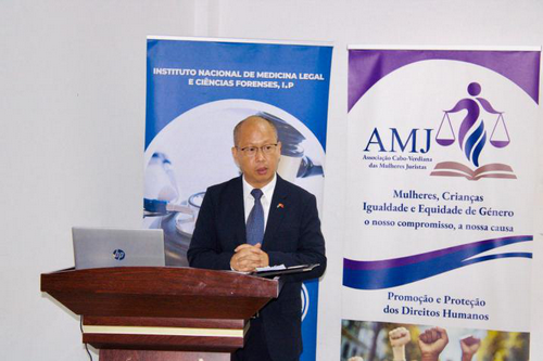 2026年4月10日,驻佛得角大使张洋出席使馆同佛得角国家法医学与法庭科学研究所共同举办的“受保护的声音:预防性暴力”公益宣传活动并讲话。佛司法部长罗萨、研究所所长塞纳、佛女法学家协会副会长安德拉德等出席并讲话。