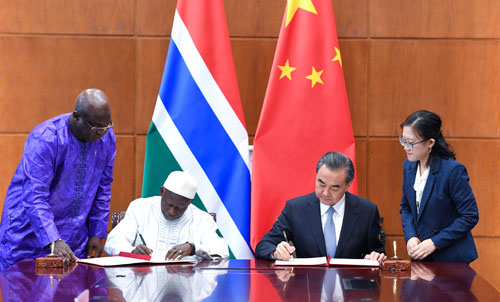 2017年8月1日,外交部长王毅在北京与来华正式访问的冈比亚外长达博举行会谈。
