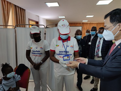 2021年7月12日,驻刚果(布)大使马福林出席使馆向刚果(布)总统夫人领导的刚果救助基金会捐赠幼儿肺炎球菌疫苗、伤寒疫苗交接仪式,刚果救助基金会秘书长蒙戈、刚卫生部国家疫苗接种计划协调人阿莱克西斯、安托瓦内特·萨苏血液研究中心主任恩戈马等出席。马福林大使向基金会转交物资并现场观摩当地儿童接种疫苗。