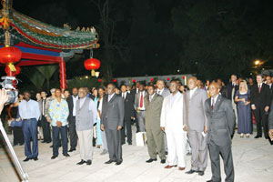 2010年9月30日,中国驻刚果(金)大使吴泽献在官邸举行招待会,热烈庆祝中华人民共和国成立61周年。刚前副总统耶罗迪亚、参议院副议长默科罗、总统特别安全顾问伦比、基建部长穆索卡等一批政府部长、总统府和总理府高官、参众两院议员、军方高级将领以及刚各界友好人士、各国驻刚使节、联刚稳定团和其他国际组织代表、我中资机构、专家组和华侨华人代表等约470人出席招待会。