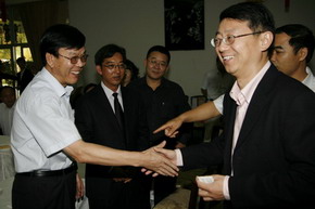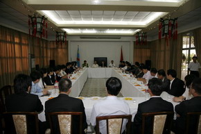 | 王大使与代表亲切握手 | 座谈会现场 |
