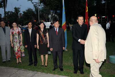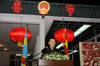 2015年2月5日,中国驻刚果(金)大使馆在大使官邸举行“庆祝2015农历新春佳节暨王同庆大使到任招待会”。刚副总理兼内政安全部长博夏卜、副总理兼邮电通讯部长卢哈卡、副总理兼劳动就业部长马基亚希等18名内阁成员,总统府和总理府高官、议会两院议员,政党、军方及各界友好人士,驻刚各国使节和国际组织负责人,以及中国在刚机构、企业、军事专家、华侨华人代表等400余人出席招待会。招待会现场张灯结彩,喜气洋洋。悠扬欢快的民族音乐,生动形象的“喜洋洋”剪纸,烘托出浓重的节日气氛。来宾们受到中国文化元素的感染,表现出对中国文化的浓厚兴致。