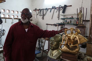里耀娄先生是刚果文化的传播者和中刚文化交流的推动者,曾获得我国“文化交流贡献奖”,也是非洲地区唯一的获奖者。他向大家详细介绍了铜雕等艺术品创作的工序并展示了他本人的大量精美作品。