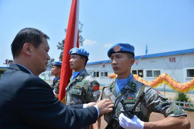 2015年8月18日至20日,中国驻刚果(金)大使王同庆在武官琚鸿彬大校陪同下,赴刚东部城市布卡武慰问了驻扎在当地的中国维和工兵和医疗两支分队,并参加了联稳团为他们举行的授勋仪式。