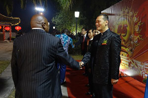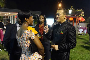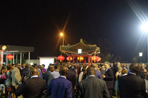 招待会现场热烈隆重,气氛友好。大屏幕滚动播放了卡比拉总统出席9.3纪念活动的集锦以及展示中国发展成就和中刚合作成果的图片。由在刚中资机构、企业和华侨华人代表组成的合唱团首次公开表演,与刚国家艺术学院学生共同演唱了两国国歌和中刚人民耳熟能详的歌曲。在场嘉宾纷纷祝贺中国建国66周年,钦佩中国巨大发展成就,赞赏中刚合作取得的累累硕果。