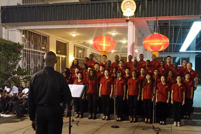 合唱团演唱两国国歌