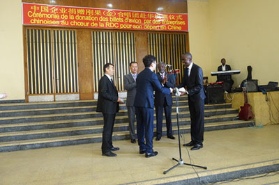 中资企业代表向合唱团捐赠机票
