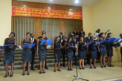 2016年7月19日,驻刚果(金)大使王同庆出席中资企业协会为刚VOX DISPOSA合唱团赴华演出捐赠机票仪式。刚文化、旅游部长穆蒂里、中资企业协会代表、VOX DISPOSA合唱团成员等近百人出席,该活动在我援建的金沙萨人民宫举行。