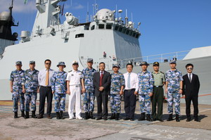 2018年11月16日,驻吉布提大使卓瑞生偕使馆等外交官和我驻吉保障基地官兵代表赴吉布提港迎接中国海军第30批护航编队邯郸舰来吉布提补给休整。这是邯郸舰执行此批护航任务以来第二次来吉补给休整。
