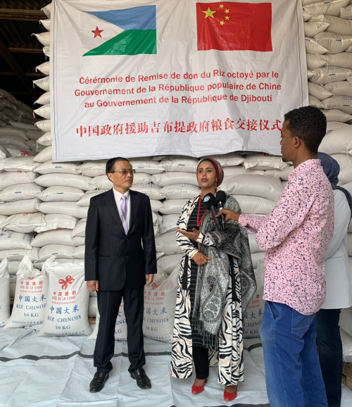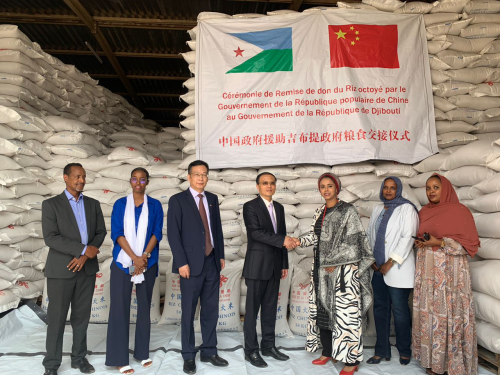 2023年3月15日,中国政府援吉布提政府紧急人道主义粮援项目交接证书签署仪式在吉外交与国际合作部举行。驻吉布提大使胡斌和吉社会事务与团结部部长乌卢法分别代表两国政府签署交接证书。胡大使、吉外长优素福、乌卢法部长分别发表讲话。
