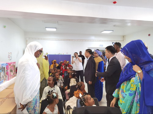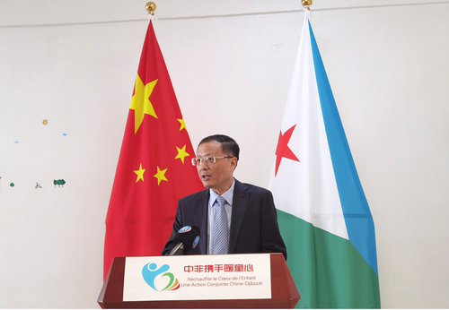 2023年5月31日,驻吉布提大使胡斌与吉妇女与家庭部长穆娜、社会事务与团结部长乌卢法共同出席使馆举办的“中非携手暖童心”活动,使馆和援吉医疗队向孤儿院捐赠物资。